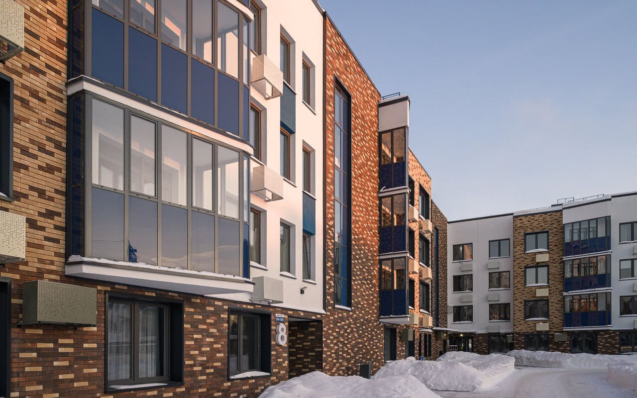 Жилой комплекс включает 6 малоэтажных кирпичных домов с авторской архитектурой и продуманным благоустройством территории. Низкая этажность, натуральные фасады и панорамные окна формируют уютную и гармоничную среду для жизни рядом с природой.