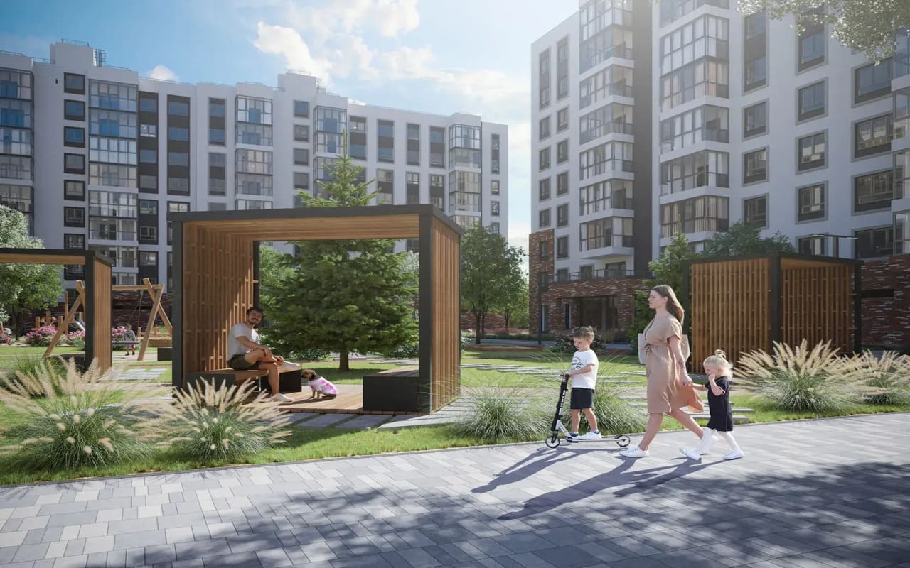 3.Большая территория – 27 тыс. кв. м благоустройства и общих зон с продуманным ландшафтом и сценариями времяпрепровождения. Это единственный жилой комплекс, у которого есть собственное озеро, красивая набережная и прибрежная территория.